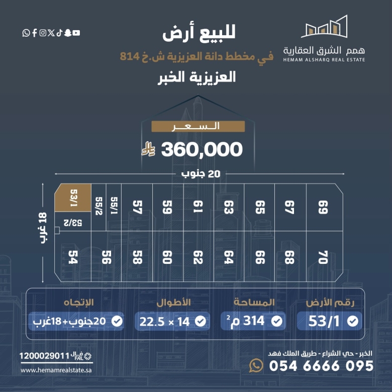 🏡 للبيع نص أرض زاوية في مخطط دانة العزيزية – الخبر